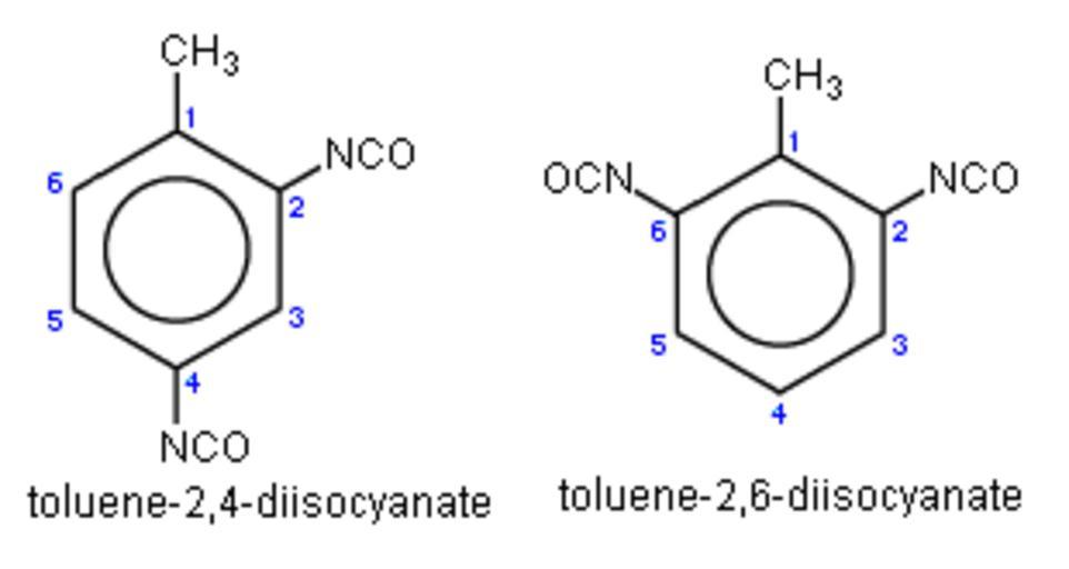 | Keywords: Toluene diisocyanates.PNG Chemical structures of isomers of toluene diisocyanate TDI commonly used in polyurethane industry H Padleckas created this image file on March 29-30 2005 especially for use in the article Isocyanate in Wikimedia H Padleckas 23 42 30 Mar 2005 UTC Isocyanates Toluenes |