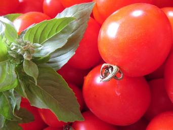 Keywords: tomato basil red green healthy frisch food vegetables nutrition