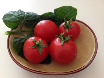Keywords: tomato small tomato vegetable red saucer green leaf