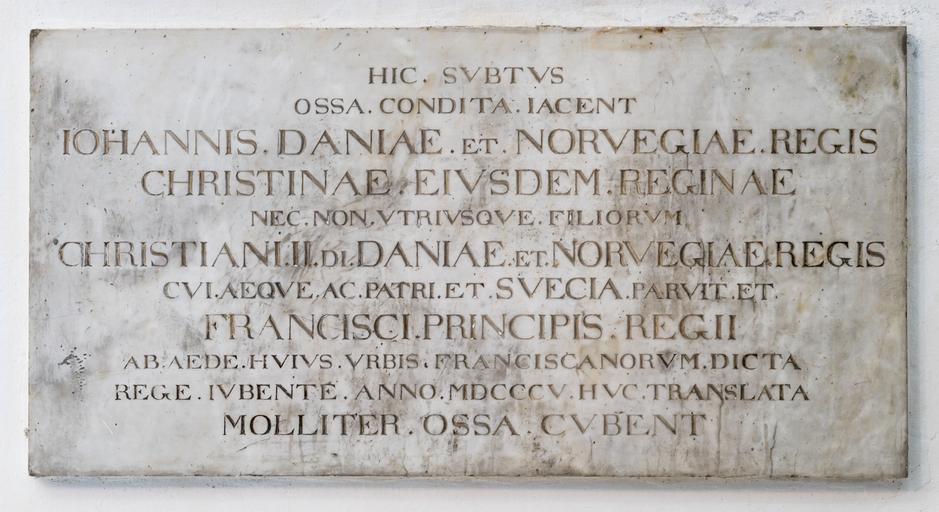 | Keywords: Tomb plaque kings John I and Christian II Danemark Sankt Knut cathedral Denmark.jpg Jean Ier de Danemark de son épouse Christine de Saxe 1461-1521 et de leurs fils Christian II de Danemark et Francis Cette plaque a été dressée dans la cathédrale Saint-Canut d'Odense Danemark lors de la translation des restes de ces souverains dans cette église en 1805 à la destruction du couvent franciscain qui les abritait jusqu'alors John King of Denmark of his wife spouse Christina of Saxony and of their sons king Christian II of Denmark and prince Francis of Denmark in saint-Knud cathedral of Odense Denmark 2016-02-24 11 44 23 own Jebulon other versions 55 395426 10 389366 cc-zero John of Denmark 1518-1532 Christina of Saxony Queen of Denmark Christian II of Denmark Interior of Sankt Knuds Kirke Odense Kommune Plaques in Denmark Plaques referencing 1805 Quality images by Jebulon Taken with Sony ILCE-7 Quality images of Odense Valued images by Jebulon Valued images of Odense Quality images of plaques QualityImage John of Denmark 1518-1532 and family funerary plaque 18 29 12 April 2016 UTC Tomb plaque kings John I and Christian II Danemark Sankt Knut cathedral Denmark jpg Taken with Sony FE 24-240mm F3 5-6 3 OSS |