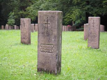 Keywords: tombstone cross forest cemetery stuttgart cemetery woodland cemetery graves soldiers graves resting place last calm tomb past