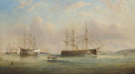 | Keywords: Tommaso de Simone (attrib.) - Royal Navy ships.jpg Artwork Attributed to Tommaso de Simone 1805 - 1888 oil canvas cm 61 106 7 accession number object history credit line exhibition history christies online 5701499 8996 792 London 2 July 2013 PD-old-100 Tommaso de Simone Paintings of ships |