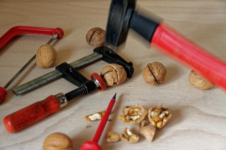 Keywords: tool hammer screw clamp screwdriver saw nuts crack open food nutshells breaking up nutcracker eat
