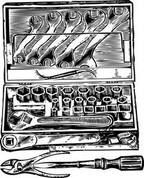 Keywords: toolbox tool box tools tool kit work box socket wrench open end wrench adjustable wrench pliers screwdriver