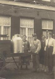 Keywords: Toon van Deursen met hondenkar.jpg en Op de foto Toon van Deursen jaren 30 van de 20e eeuw als melkventer in de Kerkstraat in Deurne NL Jan van Deursen zoon van de melkventer op de foto Tvosmeer Deurne Netherlands