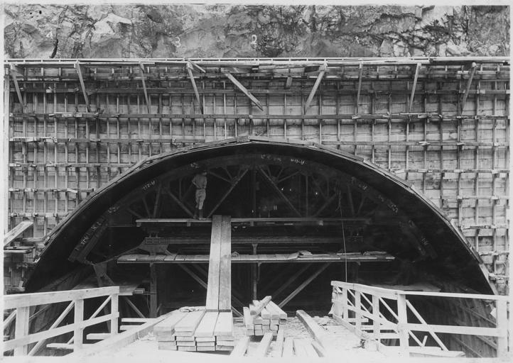 | Keywords: "Top-arch form in position under portal of diversion tunnel No. 2. Forms of trashrack structure abutment are seen." - NARA - 293691.jpg Scope and content Photograph from Volume Two of a series of photo albums documenting the construction of Hoover Dam Boulder City Nevada General notes 293691 Local identifier Department of the Interior Bureau of Reclamation Engineering and Research Center 05/18/1981 - 03/04/1988 NARA's Rocky Mountain Region Denver NRGA Building 48 Denver Federal Center West 6th Avenue and Kipling Street Denver CO 80225-0307 1932-07-01 Record group Record Group 115 Records of the Bureau of Reclamation 1889 - 2008 Record group ARC 444 Photograph albums compiled 1903 - 1972 Series ARC 293611 File unit File unit ARC Variant control numbers NAIL Control Number NRG-115-CONSTPHO85006-BC21307 Other versions <gallery> File Top-arch_form_in_position_under_portal_of_diversion_tunnel_No _2 _Forms_of_trashrack_structure_abutment_are_seen _-_NARA_-_293691 tif tif File Top-arch_form_in_position_under_portal_of_diversion_tunnel_No _2 _Forms_of_trashrack_structure_abutment_are_seen _-_NARA_-_293691 jpg jpg </gallery> NARA-cooperation PD-USGov Construction of the Hoover Dam Arches in Nevada |