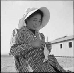 | Keywords: Topaz, Utah. Knitting warm woolen clothing for her children against the coming winter, this Japanes . . . - NARA - 538698.jpg Scope and content The full caption for this photograph reads Topaz Utah Knitting warm woolen clothing for her children against the coming winter this Japanese mother at the Topaz Relocation Center takes advantage of the warm Utah sun General notes 538698 Local identifier 210-G-E33 Department of the Interior War Relocation Authority 02/16/1944 - 06/30/1946 NARA-Author Parker Tom Photographer 4682167 <br /> Still Picture Records Section Special Media Archives Services Division NWCS-S National Archives at College Park 8601 Adelphi Road College Park MD 20740-6001 1942-10-17 Record group Record Group 210 Records of the War Relocation Authority 1941 - 1989 Record group ARC 537 Central Photographic File of the War Relocation Authority compiled 1942 - 1945 Series ARC 536000 File unit File unit ARC Variant control numbers NAIL Control Number NWDNS-210-G-E33 Other versions <gallery> File Topaz _Utah _Knitting_warm_woolen_clothing_for_her_children_against_the_coming_winter _this_Japanes_ _ _ _-_NARA_-_538698 tif tif File Topaz _Utah _Knitting_warm_woolen_clothing_for_her_children_against_the_coming_winter _this_Japanes_ _ _ _-_NARA_-_538698 jpg jpg </gallery> NARA-cooperation PD-USGov Topaz War Relocation Center |