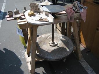 Keywords: Töpferscheibe.jpg de Töpferscheibe auf dem Töpfermarkt in Erfurt Germany en Potter's wheel at the pottery market in Erfurt Germany own photo 2005-04-23 Oliver Kurmis Potter's wheels