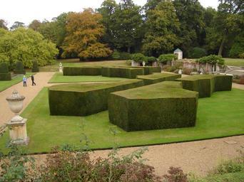 Keywords: Topiary Blickling.JPG The Grand pianos in the parterre at Blickling Hall gardens own 2009-10-18 Northmetpit Blickling Hall Gardens Topiary in England Taxus baccata topiary