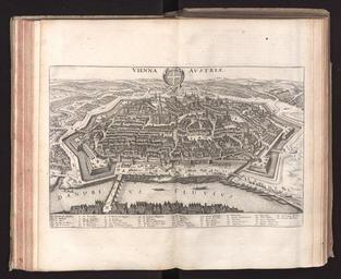 Keywords: Topographia Austriacarum (Merian) 127.jpg 126 128 Old maps of Vienna Coats of arms of Vienna Danube in art