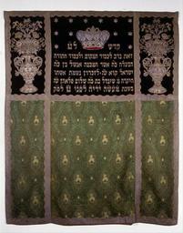 | Keywords: Torah ark curtain - Google Art Project.jpg ~ 1854 808497 Unknown /collection/the-israel-museum-jerusalem/artwork/torah-ark-curtain-unknown/715583/ B68 0521 author /collection/the-israel-museum-jerusalem/ The Israel Museum Jerusalem 336006 http //www imj org il/ 1/23/2012 8 17 31 AM /collection/the-israel-museum-jerusalem/artwork/torah-ark-curtain-unknown/715583/ 1854 ca 1854 Silk velvet damask and brocade gilt silver-thread embroidery True 715583 True 1854 3/24/2012 9 16 42 AM 372212 http //www imj org il/imagine/galleries/judaicaE asp http //www english imjnet org il/htmls/page_1686 aspx c0 15162 bsp 14855 Israel Museum Jerusalem The Israel Museum Jerusalem Torah ark curtain 1850 1860 Prague Bohemia ca 1854 False 0 78125 Photo © The Israel Museum Jerusalem Object torah-ark-curtain-unknown Torah ark curtain t Coen-Uzzieli Tania H 228; W 191 cm Inscribed in Hebrew with the names of the donor and his wife in whose memory he donated the curtain and an indication of the date Silk velvet damask and brocade gilt silver-thread embroidery special url_id fgFjkA2FZbuyiw PD-old-100 Google Art Project works by unknown artist Images from The Israel Museum Jerusalem |