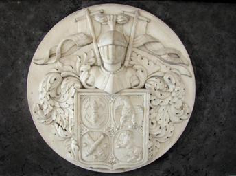 Keywords: Tordenskiolds våben.JPG Tordenskiolds våben detalje fra sarkofag i Holmen Kirkes store gravkapel København own 2011-10 Orf3us Peter Wessel Tordenskiold Nicolai Dajon PD-old-100