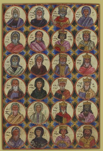 Keywords: T'oros Roslin - Ancestors of Christ - Google Art Project.jpg ink paint and gold on parchment Priest T'oros nephew of the catholicos Constantine I Hromkla Armenia between 1262 and 1266; Hermitage of Ark'-akaghin Cilicia Armenia 1266 mode of acquisition unknown; Ter Tiratur Sebastia Armenia 1604 mode of acquisition unknown; Church of the Holy Virgin Sebastia Armenia between 1626 and 1881 mode of acquisition unknown; Church of the Holy Cross Sebastia Armenia beween 1881 and 1915 mode of acquisition unknown; Dikran Kelekian Paris date and mode of acquisition unknown; Henry Walters New York 1929 by purchase; Sadie Jones Mrs Henry Walters New York 1931 by bequest; Walters Art Museum 1935 by bequest special url_id SwHoO5rWQidEgg PD-old-100-1923 1268 Google Art Project works by T'oros Roslin Walters MS W539 - Toros Roslin Gospels Genealogy of Jesus Christ Medieval miniatures of Jesus |