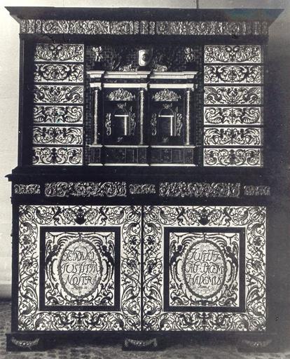 | Keywords: Tortoiseshell cabinet Sobieski.JPG Italy Cabinet of John III Sobieski < 1683 Tortoise-shell ivory mother-of-pearl ebony cm 205 162 58 Owned by the Wilanów Palace lost 1939-1945 accession number object history credit line Presented to the king by Pope Innocent XI after victorious battle of Vienna It was looted during the World War II by Alfred Schellenberg from the Wilanów Palace in Warsaw Catalogue of stolen and missing cultural achievements / comp Jan Świeczyński; Ośrodek Informacyjno-Koordynacyjny Ochrony Obiektów Muzealnych Warsaw 1988 Editor Wojciech Jaskulski Piotr Ogrodzki See also http //kolekcje mkidn gov pl/katalog/podglad ID 12824 Department of National Heritage Wartime losses an official webpage of Polish Ministry of Culture Art and National Heritage PD-Art Photo Photo http //kolekcje mkidn gov pl/katalog/podglad ID 12824 Department of National Heritage Wartime losses an official webpage of Polish Ministry of Culture Art and National Heritage author < 1939 PD-Polish Anonymous-EU Furniture lost in Poland during World War II Missing items from the Wilanów Palace John III Sobieski Collection Cabinets Wooden furniture Incrustation Tortoiseshell Mother of pearl inlay Ebony |