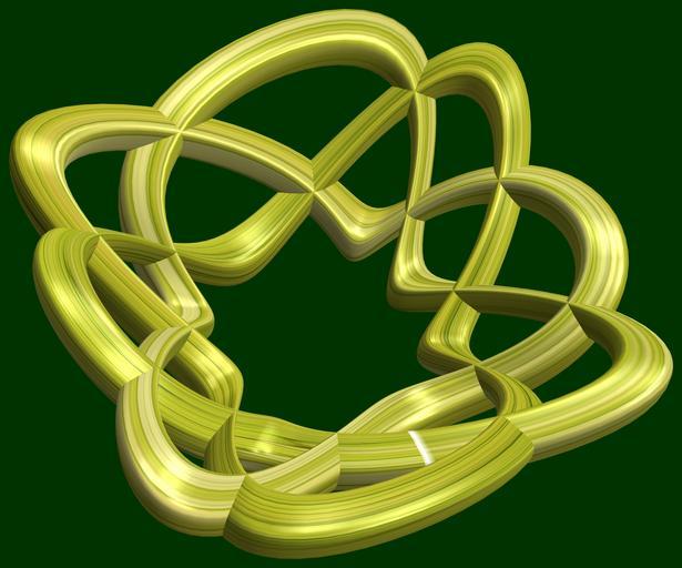 Keywords: mathematica 3d cg parametricplot3d texture torus code program algorithm プログラム コード アルゴリズム 輪環 りんかん ドーナツ どーなつ lissajous リサージュ geometric sculpture geometricsculpture shape geometry sculpture mapping テクスチャ マッピング 模様 もよう abstract 抽象 ちゅうしょう アブストラクト design pattern デザイン パターン graphic グラフィック グラフィクス structure 意匠 構造 symmetry 対称性 たいしょうせい シンメトリー 対称 たいしょう black background indoor tangle bright a = 8;(*center hole size of a torus*) b1 = 8;(*number of cross*) b2 = 3;(*number of cross*) c = 0;(*distance from the center of rotation*) d = 1;(*number of torus*) w = 3;(*gap width*) SetOptions[ParametricPlot3D, PlotRange -> Full, Mesh -> None, Boxed -> False, Axes -> None, PlotPoints -> 400, ImageSize -> 3000, Background -> Darker[Green, 0.8], PlotStyle -> Directive[Specularity[White, 90], Texture[Import["D:/tmp/71.jpg"]]], TextureCoordinateFunction -> ({#4 + #5, #5/Pi} &), Lighting -> "Neutral"]; f[v_] := Sin[2 Sin[Sin[Sin[v]]]]; x = (a - Cos[t] + w Sin[b1 s]) Cos[b2 s] + c; y = (a - Cos[t] + w Sin[b1 s]) f[b2 s] + c; z = w Sin[b1 s] + f[t] + c; rm = Table[{x, y, z}.RotationMatrix[2 i Pi/d, {0, 0, 1}], {i, d}]; ParametricPlot3D[rm, {t, 0, 2 Pi}, {s, 0, 2 Pi}] (*--- The Texture *) a = 8;(*center hole size of a torus*) b1 = 8;(*number of cross*) b2 = 3;(*number of cross*) c = 0;(*distance from the center of rotation*) d = 1;(*number of torus*) w = 3;(*gap width*) SetOptions[ParametricPlot3D, PlotRange -> Full, Mesh -> None, Boxed -> False, Axes -> None, PlotPoints -> 400, ImageSize -> 3000, Background -> Darker[Green, 0.8], PlotStyle -> Directive[Specularity[White, 90], Texture[Import["D:/tmp/71.jpg"]]], TextureCoordinateFunction -> ({#4 + #5, #5/Pi} &), Lighting -> "Neutral"]; f[v_] := Sin[2 Sin[Sin[Sin[v]]]]; x = (a - Cos[t] + w Sin[b1 s]) Cos[b2 s] + c; y = (a - Cos[t] + w Sin[b1 s]) f[b2 s] + c; z = w Sin[b1 s] + f[t] + c; rm = Table[{x, y, z}.RotationMatrix[2 i Pi/d, {0, 0, 1}], {i, d}]; ParametricPlot3D[rm, {t, 0, 2 Pi}, {s, 0, 2 Pi}] (*--- The Texture *) |