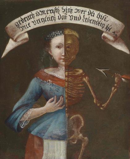 | Keywords: Tot und lebendig.jpg Memento Mori Das Spruchband über der Figur sagt Gedenck Mensch sich wer Du bist/Wie ungleich Dott und Lebendig ist<br> Süddeutsche Schule des 18 Jahrhunderts Öl auf Leinwand 46 x 38 2 cm http //www dorotheum com/auktion-detail/auktion-9767-alte-meister/lot-1422900-suddeutsche-schule-des-18-jahrhunderts html no_cache 1 offset 1 cHash 5bf3f5089f3766512539ffb8c833db44 dorotheum com heruntergeladen am 26 November 2012 century 18 author PD-art-100 Paintings of Vanitas People with banners Oil paintings of girls 18th-century paintings from Germany Personifications of death Arrows in art Paintings with inscribed scrolls 18th-century oil on canvas paintings Paintings with German inscriptions |