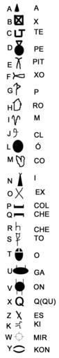| Keywords: Totes.png pt Tots ou Totês é uma língua escritas em hieróglifos inventada por Leônidas Não cita sobrenome no início do mês de feveriro de 1999 Nessa língua o nome pode ser traduzido para a pronúncia Exemplo OPITEX Léo ou não Ela tem como base o Português Arquivos Pessoais de Leônidas Leônidas 1999-02 Reprodução Permitida desde que seja informado o autor Tabelas Uncategorized 2015 April 14 |