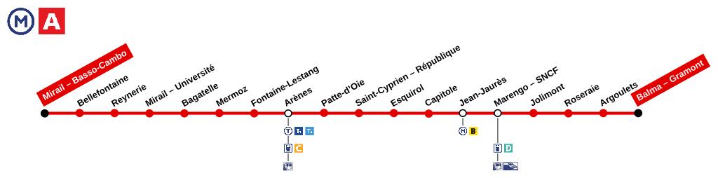 Keywords: Toulouse line A map.svg de Plan der Linie A der U-Bahn von Toulouse en Map of Toulouse public transport line A subway fr Plan de la ligne A du métro de Toulouse own Sardon 2009-01-14 Maps of Toulouse Metro