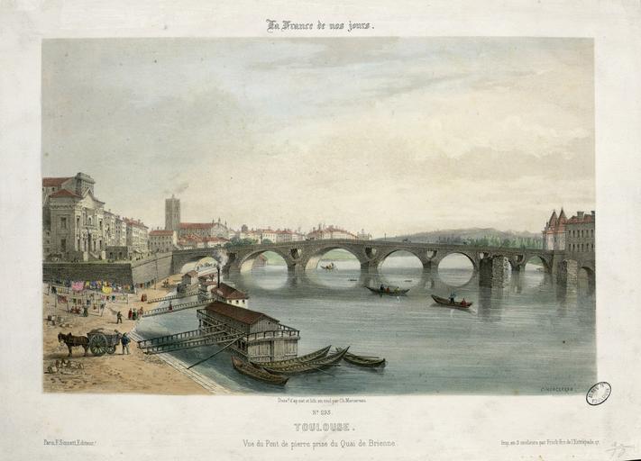 | Keywords: Toulouse - Vue du Pont de pierre prise du Quai de Brienne - Fonds Ancely - B315556101 A MERCEREAU 7 053.jpg Impression en 3 coul par Frick frères à Paris Fait partie d'un ensemble de recueils de lithographies de Mercereau composés de lithographies provenant de La France de nos jours vaste suite publiée par livraisons de 1853 à 1876 et comprenant 475 planches en deux tirages l'un à deux teintes noir et bistre l'autre en couleurs Les libraires ont réuni ces planches en albums de composition variable quant au nombre de planches et aux dessinateurs Asselineau Mercereau Maurice Deroy etc Un titre Les Pyrénées par Ch Mercereau; Bagnères-de-Luchon par Ch Mercereau était frappé sur le plat supérieur de la reliure de l'album ainsi que le nom du Libraire pour lequel il était réalisé La plupart des recueils de ces planches pyrénéennes portent le nom de Sajous libraire à Bagnères-de-Luchon Pl 1 à 18 numérotées de 370 à 386 Pl 374 pl 5 et 6 en double -- Pl 19 20 et 21 numérotées respectivement 407 415 et 418 Ces trois pl ont été dessinées et lithographiées par Asselineau -- Pl 22 23 et 24 numérotées 438 439 et 440 -- Pl 22 lith par Aubrun -- Pl 25 numérotée 441 -- Pl 26 à 40 numérotées de 327 à 341 -- Pl 41 à 46 numérotées de 363 à 368 -- Pl 47 numérotée 369 -- Pl 48 num 292 -- Pl 49 et 50 num 264 et 265 -- Pl 51 et 52 num 268 et 269 -- Pl 53 à 55 num de 293 à 295 -- Pl 56 num 300 -- Pl 57 à 59 num de 307 à 309 -- Pl 60 à 70 num de 316 à 326 -- Pl 71 num 63 dessin et lith d'Asselineau imprimerie Destouches -- Pl 72 et 73 num 87 et 88 dessin et lith d'Asselineau imprimerie Destouches -- Pl 74 num 124 signée Lebreton éditée chez Lalonde à Paris et imprimée chez Becquet frères à Paris -- Pl 75 num 161 dessin et litho d'Asselineau imprimerie Destouches --Pl 76 à 78 num de 207 à 209 -- Pl 79 à 81 num de 211 à 213 -- Pl 82 num 220 dessin et lith de Maurice imprimerie Destouches -- Pl 83 à 86 num de 226 à 229 -- Pl 87 et 88 num 234 et 235 -- Pl 89 à 91 num de 273 à 275 -- Pl 92 et 93 num 290 et 291 Pièces jointes 6 pl sépia dont certaines sont des doubles du recueil de Mercereau Les cinq premières planches sont numérotées respectivement 318 321 324 331 386 La dernière planche n'est pas extraite de La France de nos jours mais de L'Espagne pittoresque et monumentale Ces six planches sont signées Mercereau éditées chez Sinnet et imprimées chez Frick frères Ancely René 1876 - 1966 Possesseur fre public domain domaine public B315556101_A_MERCEREAU_7_053 jpg image/jpeg 1 f de pl lithogr ; 25 5 cm oblong Frick frères Imprimeur Sinnet F Éditeur http //numerique bibliotheque toulouse fr/collect/general/index/assoc//ark /74899/B315556101_A_MERCEREAU_7_053 dir/B315556101_A_MERCEREAU_7_053 jpg Bibliothèque municipale de Toulouse A-MERCEREAU 7-53 Creator Charles Mercereau http //catalogues toulouse fr/web2/tramp2 exe/do_keyword_search/log_in setting_key BMT1 servers 1home query p001677 St Jean-de-Luz intérieur de l'Eglise St Jean-de-Luz le Château de l'Infante Biarritz Vue générale prise du Phare Château de Mauvesin près Bagnères-de-Bigorre Hautes Pyrénées Bagnères de Bigorre Hautes Pyrénées - Intérieur de l'Eglise des Carmes en couleurs Bagnères de Bigorre Hautes Pyrénées - Intérieur de l'Eglise des Carmes Bagnères-de-Bigorre - Eglise et couvent des Carmes Bagnères-de-Bigorre Hautes-Pyrénées - Tour des Jacobins Cascade et Pont de Magenta Vallée de l'Esponne Hautes Pyrénées Cascade de Trémes-Aïgues Vallée de Grip Hautes Pyrénées St Sauveur Hautes Pyrénées - Le Pont Napoléon Bayonne - Eglise St André Arreau et la Vallée d'Aure Hautes Pyrénées - Vue prise au dessus de la route du Col d'Aspin Auch - Vue prise sur les bords du Gers Auch - Vue de la Cathédrale Auch - Intérieur de la Cathédrale Bagnères-de-Bigorre - Vue Générale prise de la Fontaine ferrugineuse Eaux-Bonnes Basses-Pyrénées - L'établissement Thermal et la Chapelle Nantes - Vue de l'Eglise Ste Croix Le Croisic - Plage des Baigneurs et Etablissement de Bains Le Folgoët - Vue de l'Eglise Brèche de Roland prise de Gèdres Hautes Pyrénées Eglise des Templiers à Luz Chapelle du couvent de Pouëlahun i e Pouey Lahun - Vallée d'Azun Hautes Pyrénées Le Pont de Scia - Route de Luz à Gavarnie Hautes-Pyrénées Vue de l'établissement de la Raillière près Cauterets Hautes-Pyrénées Vue générale de Cauterets prise du Mamelon Vert Hautes-Pyrénées Vue du Fort de Lourdes Hautes-Pyrénées Vue d'Argelès-de-Bigorre Hautes-Pyrénées Vue de St Sauveur Hautes-Pyrénées Le Pas de l'Echelle Route de Gavarnie Hautes-Pyrénées Fond de la Vallée d'Argelès prise de la terrasse de St Savin Hautes-Pyrénées Place Grammont à Pau Basses-Pyrénées Vue générale des Eaux-Bonnes Basses-Pyrénées Barèges et la Vallée du Bastan Hautes-Pyrénées Chute supérieure du Pont d'Espagne Hautes-Pyrénées La grotte miraculeuse à Lourdes Hautes-Pyrénées Eglise de Bétharram et Pont de Lestelle Basses Pyrénées Cascade du Cerizet Près Cauterets Hautes-Pyrénées Pic du Midi d'Ossau 2885m Basses Pyrénées - Vue prise du 3e plateau de Bious-Artigues Toulouse - Cloître du Musée et Clocher des Augustins Pau - Vue prise de la terrasse du Château Pau - Vue du Château prise du Parc Toulouse - Cloître du Musée Galerie du Moyen-Age Toulouse - La maison de pierre fragment de la façade Toulouse - Intérieur de St Sernin St Jean-de-Luz Fort du Socoa Toulouse - Vue du Capitole Bordeaux Vue de la Porte du Caillau i e Cailhau Bordeaux Porte de la grosse Cloche Bordeaux Vue des Quinconces Bordeaux - Vue de la Tour et de l'Eglise de St Michel Toulouse - Abside de l'Eglise de St Sernin de l'an 1097 Toulouse - Choeur de la Cathédrale St Etienne Rouen - Hôtel de Bourgtheroulde Biarritz - Vue des Bains Napoléon et du Casino Biarritz - Vue des Bains du Port Vieux Biarritz - Vue de l'Entrée de la Ville à l'arrivée de Bayonne Le Lac Bleu Hautes-P