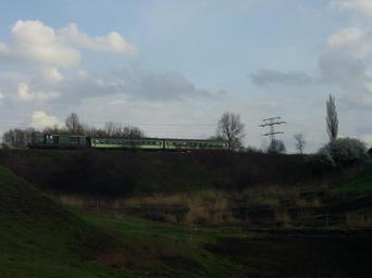 Keywords: Tourist train Orzegow r189.JPG 189 outside the village of Orzegów part of Ruda Śląska 2012-04-21 own Jan Pešula cc-zero Uploaded with UploadWizard Orzegów Railway line 189 Poland