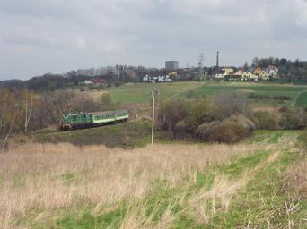 Keywords: Tourist train outside Pszow.JPG Pszów Poland visible in the background on route 192 2012-04-21 own Jan Pešula cc-zero Uploaded with UploadWizard Pszów Railway line 192 Poland