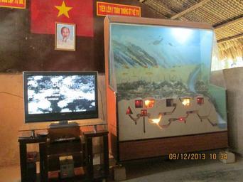 Keywords: 'Tourist Video room' in Cu Chi Complex.JPG en The underground bunker where tourists are given a lecture on the Cu Chi Tunnel history and architectural design own Rudolph A Furtado Monday 9-12-2013 Cu Chi Tunnel Cc-zero