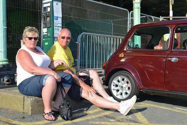 Keywords: tourists driver couple mini car auto england british people