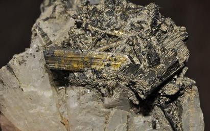 Keywords: Tourmalines var. dravites et var. schorls (Brésil) 2.jpg fr cristaux de tourmalines var dravite et var schorl sur albite own Parent Géry 2010-12-13 Tourmaline Dravite Schorl Albite Cc-zero Taken with Nikon D90