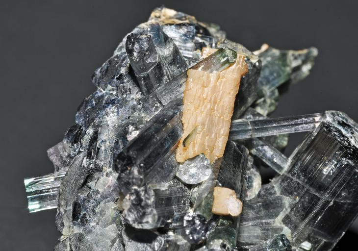 Keywords: Tourmalines var. elbaïtes et orthose (Brésil).jpg fr cristaux de tourmalines var elbaïte var indicolite var achroïte et orthose own Parent Géry 2010-12-13 Tourmaline Elbaite Achroite Indicolite Orthoclase Cc-zero Taken with Nikon D90
