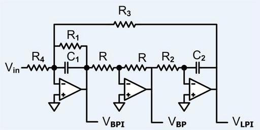 | Keywords: Tow-Thomas active filter with complimentary bandpass outputs.png en Modified Tow-Thomas active filter that has two band pass outputs that are compliments of each other 2015-09-12 own Constant314 other versions cc-zero Uploaded with UploadWizard Electronics Active filters Active filter circuits Linear filters Electronic filters |