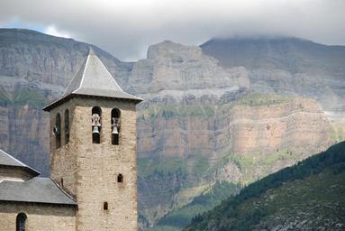 Keywords: tower church tower torla mountain landscape pyrenees spain