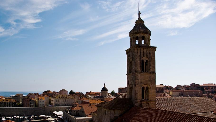 Keywords: tower roofs church dubrovnik croatia old dalmatia europe city architecture building town historic unesco religious