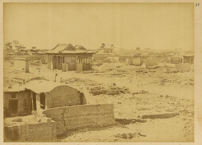 | Keywords: Town of Anxi on the Edge of the Gobi, Ruins Surrounded with an Earthen Wall. Xinjiang, China, 1875 WDL2067.png Artwork ru Боя ский Адольф- иколай Э азмович fr Boiarskii Adolf-Nikolay Erazmovich en Boiarskii Adolf-Nikolay Erazmovich zh 阿道夫 伊拉莫维奇 鲍 尔斯基 pt Boiarskii Adolf-Nikolay Erazmovich ar أدولف-نيكولاي إرازموفيتش بويارسكي es Boiarskii Adolf-Nikolay Erazmovich ru Го од Аньси на к аю пустыни Гоби азвалины ок уженные земляной стеной П овинция Синьцзян Китай 1875 г fr Ville d'Anxi au bord du désert de Gobi ruines entourées d'un mur en argile Province du Xinjiang en Chine 1875 en Town of Anxi on the Edge of the Gobi Ruins Surrounded with an Earthen Wall Xinjiang China 1875 zh 戈壁边缘的安西镇,被 墙围绕的废墟 中国新疆,1875 年 pt Vila de Anxi nas extremidades de Gobi ruínas rodeadas por uma muralha de terra Xinjiang China 1875 ar بلدة أنغزاي على حدود صحراء غوبي، أطلال يحيط بها جدار ترابي شينجيانغ، الصين، 1875 ru В 1874 1875 гг оссийское п авительство нап авило в Китай учено-то говую экспедицию с целью поиска новых сухопутных ма ш утов к китайскому ынку оценок возможностей для более активной то говли и для асположений консульств и фаб ик а также сбо а инфо мации о Дунганском восстании бушевавшем в то в емя в западных айонах Китая Экспедиция уководителем кото ой был полковник Гене ального штаба Ю А Сосновский состояла из девяти человек капитана атусовского топог афа докто а Павла Яковлевича Пясецкого научного сот удника пе еводчиков с усского и китайского языков т оих казаков и фотог афа экспедиции Адольфа Э азмовича Боя ского Экспедиция отп авилась из Санкт-Пете бу га в Шанхай че ез Улан-Бато онголия Пекин и Тяньцзинь и затем последовала по ма ш уту вдоль еки Янцзы по Великому шелковому пути п оходя че ез оазис Хами к озе у Зайсан об атно в Россию Боя ский сделал около 200 снимков кото ые легли в основу уникальных мате иалов для изучения Китая того в емени Большая часть фотог афий вошла в этот альбом кото ый позже стал частью коллекции Те езы К истины а ии соб анной импе ато ом Б азилии Пед у II и пе еданной им ациональной библиотеке Б азилии <br>Здания; Го ода и поселки; Память ми а; Руины fr En 1874-1875 le gouvernement russe organisa une mission commerciale et de recherche en Chine Cette mission avait pour objectif de trouver de nouvelles routes terrestres vers le marché chinois d'étudier les perspectives d'une expansion commerciale de rechercher des sites pour l'installation de consulats et d'usines et de recueillir des informations sur la révolte de Dungan qui faisait alors rage dans les provinces de la Chine occidentale Composée de 9 hommes et dirigée par le lieutenant-colonel Iulian A Sosnovskii de l'état-major général de l'armée cette mission comprenait également un topographe le capitaine Matusovskii un responsable scientifique le Dr Pavel Iakovlevich Piasetskii des interprètes chinois et russes trois sous-officiers cosaques et le photographe de la mission Adolf Erazmovich Boiarskii La mission se déroula de Saint-Pétersbourg à Shanghai en passant par Oulan-Bator Mongolie Pékin et Tianjin Elle longea ensuite le fleuve Yangtsé et suivit la grande Route de la soie à travers l'oasis Hami et jusqu'au lac Zaysan de retour en Russie Adolf Erazmovich Boiarskii prit quelque 200 photographies ce qui constitue une source unique pour l'étude de la Chine de cette période La plupart des photographies prises durant cette mission apparaissent dans cet album lequel rejoignit par la suite la collection Thereza Christina Maria rassemblée par l'empereur Pierre II du Brésil qui en fit don à la Bibliothèque nationale du Brésil <br>Bâtiments; Petites et grandes villes; Mémoire du monde; Ruines en In 1874-75 the Russian government sent a research and trading mission to China to seek out new overland routes to the Chinese market report on prospects for increased commerce and locations for consulates and factories and gather information about the Dungan Revolt then raging in parts of western China Led by Lieutenant Colonel Iulian A Sosnovskii of the army General Staff the nine-man mission included a topographer Captain Matusovskii; a scientific officer Dr Pavel Iakovlevich Piasetskii; Chinese and Russian interpreters; three non-commissioned Cossack soldiers; and the mission photographer Adolf Erazmovich Boiarskii The mission proceeded from Saint Petersburg to Shanghai via Ulan Bator Mongolia Beijing and Tianjin and then followed a route along the Yangtze River along the Great Silk Road through the Hami oasis to Lake Zaysan back to Russia Boiarskii took some 200 photographs which constitute a unique resource for the study of China in this period Most of the photographs are included in this album which later became part of the Thereza Christina Maria Collection assembled by Emperor Pedro II