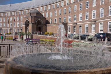 Keywords: town hall bristol fountain building architecture facade city water half round england