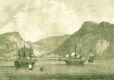 | Keywords: Town of St James, Island of St Helena (1794).jpg en Copper engraving entitled Town of St James Island of St Helena 1794 published in London 1813 Antique print Signed but illegible 1813 public domain PD-old-100 History of Saint Helena 1790s Jamestown Saint Helena |