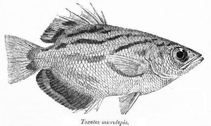 Keywords: ToxotesMicrolepis.png Toxotes microlepis <small>Günther 1860</small> Fauna of British India Fishes Volumes 1 and 2 via www archive org 1889 Sir Francis Day Public domain due to age PD-old Toxotes microlepis Francis Day
