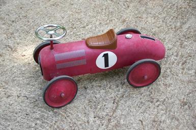 Keywords: toy car red child play fun auto vehicle steering wheel game recreation colorful young children small kid childhood