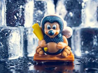 Keywords: toy figurine miniature figure small little macro mini closeup model water cool drop ice white cold blue reflection frozen liquid light space glass winter bubble cube