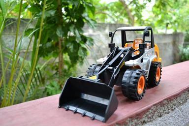 Keywords: toy plastic dozer backhoe close-up wheels construction yellow sri lanka ceylon mawanella