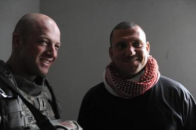 | Keywords: Toy and supply delivery DVIDS227154.jpg en An Iraqi policeman from the Daquq Police Department and 1st Lt Daniel Braud Platoon Leader 1st Cavalry Division 2nd Brigade Combat Team 9th Cavalry 4th Squadron 3rd Platoon talk as their two groups deliver toys and supplies to more than 150 children gathered at the Youth Center in Daquq Iraq Nov 25 2009 The partnership was in honor of the Iraqi Junior Heroes Program which is designed to help children become more comfortable with Iraqi security forces and teach children what they can do to strengthen their community U S Navy photo by Mass Communication Specialist 2nd Class SW Matthew D Leistikow 2009-11-25 Petty Officer 1st Class matthew leistikow https //www dvidshub net/image/227154 091125-N-+++++-412 2009-11-27 06 21 DAQUQ IQ PD-USGov-Military-Navy 1st Cavalry Division United States Images from DoD uploaded by Fæ |