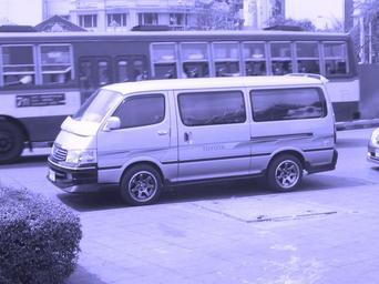 Keywords: TOYOTA HIACE IN PAKKLONGTALAD 1.JPG en FRONT TOYOTA HIACE IN PAKKLONGTALAND BANGKOK THAILAND own Anuvadh Phanna 2010-02-09 Toyota HiAce H100 Minibuses in Thailand Black and white photographs of automobiles
