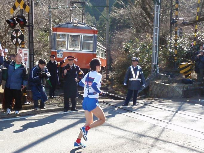 | Keywords: Tozan Kowakidani cross Ekiden Yamanashigakuin.jpg  en When the runner of Hakone-ekiden Relay Race passes Hakone Tozan Railway stops the train in this side of the railroad crossing 35 24009 139 05402 2010 Hakone Ekiden Yamanashi Gakuin University Hakone Tozan Type Moha 1 Kowakidani crossing |