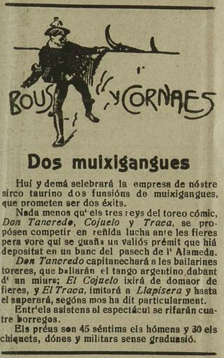 Keywords: Traca 6 gen 1917.jpg ca Notícia al número 278 de La Traca sobre una funció de toreig còmic 1917-01-06 Biblioteca Valenciana La Traca other versions Custom license marker 2016 01 30 PD-Old La Traca 1917 in the Land of Valencia Bullfighting in Spain Humorous bullfighting |