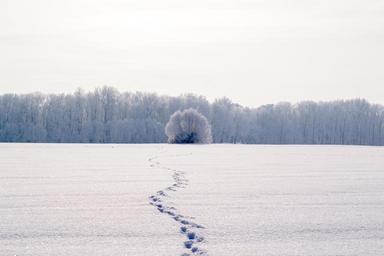 Keywords: traces snow snow lane footprints reprint wintry footprint tree forest edge of the woods field nature winter covered