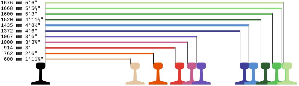 | Keywords: Track gauge.svg Comparison of various railway track gauges Rail_gauge svg 2011-12-13 23 31 UTC Rail_gauge svg http //commons wikimedia org/wiki/User IRTC1015 derivative work HTML2011 <span class signature-talk >talk</span> mm first for better readability HTML2011 Rail_gauge svg Rail track profiles Uploaded with derivativeFX Track gauge comparison |
