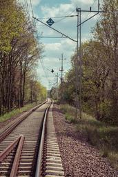 Keywords: tracks railway poland railroad tracks transport sleepers rails pkp splint communication travel traction cables tree railway embankment earthwork