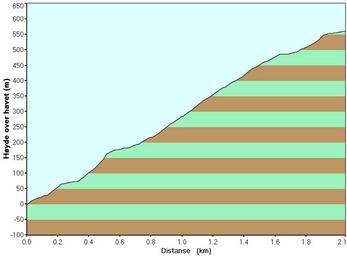 Keywords: Trælneshatten-Profil.PNG en Height profile climbing the Trælneshatten mountain in Brønnøy Norway no Høydeprofil ved bestigning av Trælneshatten i Brønnøy kommune Own Event 2009-08-16 cc-zero Brønnøy altitude profiles