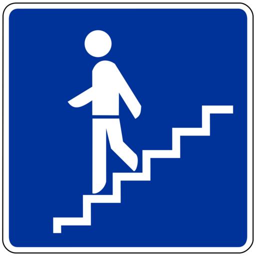 Keywords: traffic sign road sign shield traffic road street sign underpass pedestrian bridge pedestrian stairs rise blue white
