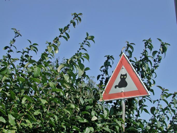 Keywords: traffic sign shield humor funny cat animal pet black cat caution street sign road sign ban germany strange