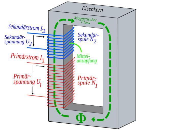 Keywords: Trafo 0.svg en Transformer side view de Schrägansicht eines Transformators mit Mittelanzapfung der Sekundärspule own Herbertweidner1 2009-06-13 Transformer schemas